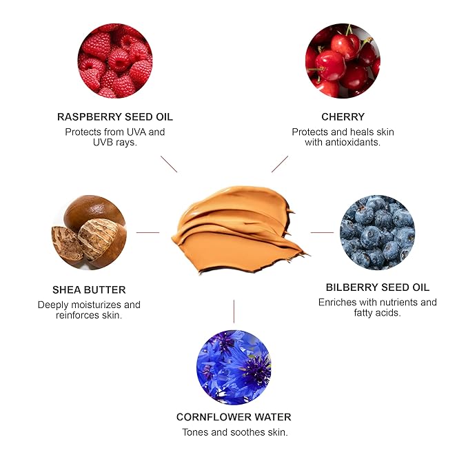 - HYDRATING NUTRIENTS WITH A TINT - Get that glowing, flawless and illuminated complexion naturally; packed with anti-aging antioxidant-rich fruits like raspberry seed oil, bilberry, cornflower water, and cherry oil.