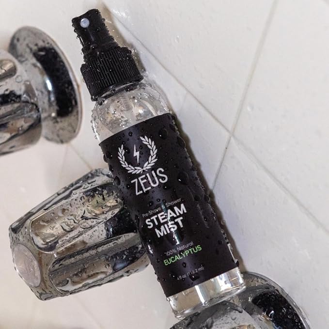 - STEAM THERAPY: Enjoy the benefits of natural eucalyptus with ZEUS Steam Mist for shower steam, diffusers, and pre-shave care. A few sprays create a relaxing environment that clears sinuses & soothes skin. Great for hot towels or daily spa routines, this formula delivers freshness in every mist.