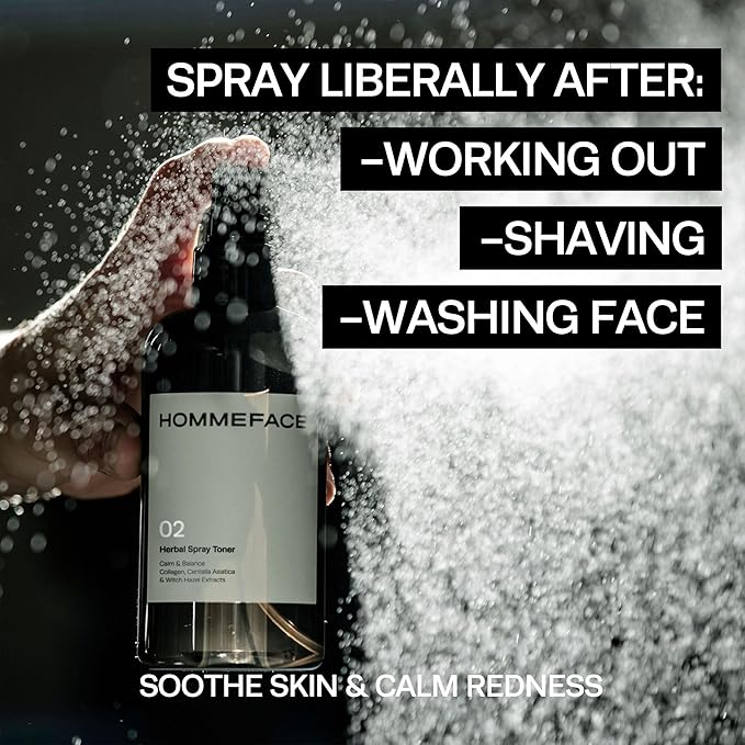 HOMMEFACE Men’s Herbal Spray Face Toner, 8.45 fl. oz. - Alcohol-Free, Hydrating and Balancing Facial Mist with Witch Hazel, CICA Extract, Anti Aging, Aftershaving, for All Skin Types