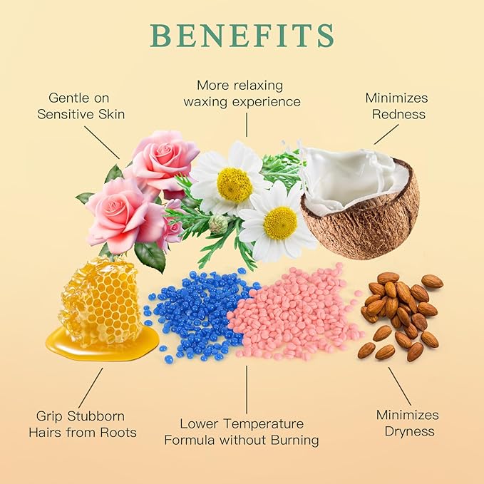 - 【Waxing Beads for Sensitive Skin】BOUVETAN hard wax beans are specifically formulated with hypoallergenic ingredients. They are meticulously designed for sensitive areas hair removal like the bikini line and underarms
