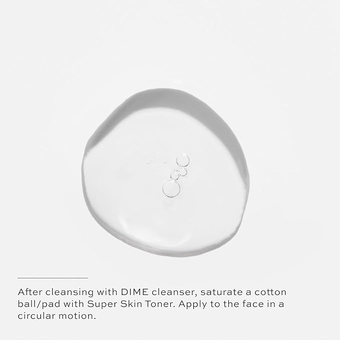 - SUGGESTED USE: After cleansing with your favorite DIME cleanser, saturate a cotton ball or cotton pad with Super Skin Toner. Apply to the face in a circular motion. Avoid the eye area. For best results, follow with the application of a DIME serum and moisturizer.