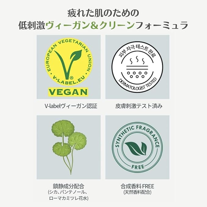 - SKIN CALMING COMBINATION(CICA + PANTHENOL + CAMOMILE)