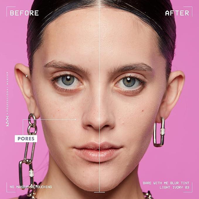NYX PROFESSIONAL MAKEUP Bare With Me Blur Skin Tint Foundation Make Up with Matcha, Glycerin & Niacinamide - Light Ivory