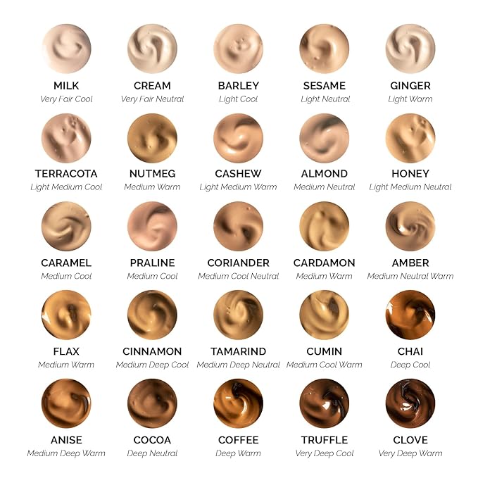 - Weightless Coverage in Every Shade: OFIR’s breathable cream foundation offers buildable, weightless coverage that evens tone. Available in a variety of satin shades, from light to very deep including Amber, Anise, Cinnamon, Clove, Cocoa, Cream, Cumin, Ginger, Milk, Terracotta, Chai, Coffee, Flax, Praline, Truffle.