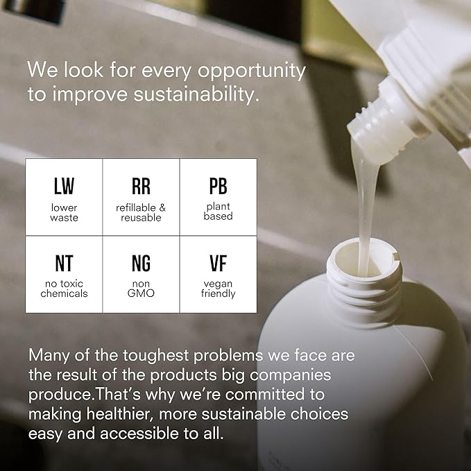 - Less Waste - Designed with sustainability in mind, our 34 ounce lotion is ideal for refilling our 12 ounce bottle or one of your own.