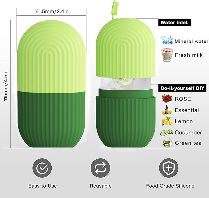 - ✅ SAVE MONEY AND VERSATILE: Refillable for a fresh and clean cube each use. Freeze alternate cube recipes,such as lemonade for whitening, green tea for inflammation, cucumber water for reducing swelling, Mint leaves refreshing and coconut for improving skin Milk.