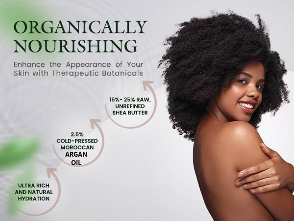 - [Nourishing Vanilla Body Butter with Argan Oil & Vitamin E] This whipped shea body butter for dry skin is infused with warm vanilla bean, argan oil, and Vitamin E to deeply moisturize, soften rough areas, and leave skin glowing — without greasiness.
