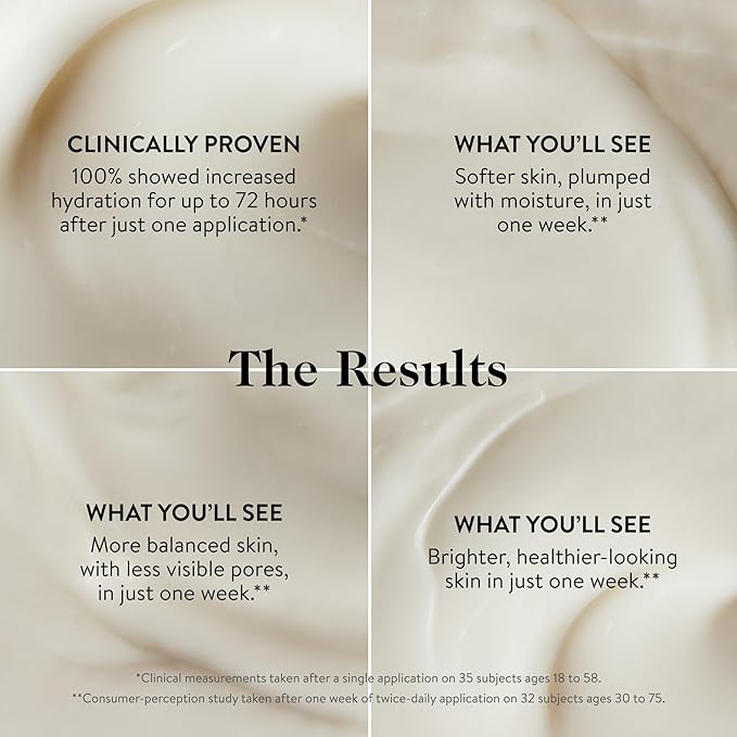 - Skin Hydration: This lightweight moisturizer delivers up to 72 hours of moisture after a single application while strengthening the skin’s moisture barrier, reducing shine, and supporting longer-term benefits like brightening, plumping and smoothing.