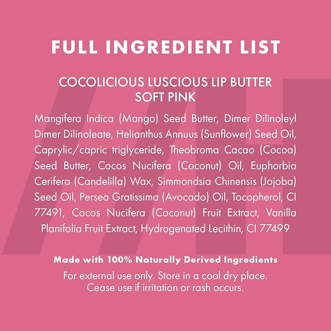 - CLEAN BEAUTY: All natural vegan lip balm made with Mango Butter, Hyaluronic acid, Jojoba Oil & Avocado Oil. Fragrance free with NO synthetics, petroleum, mineral oil & palm oil