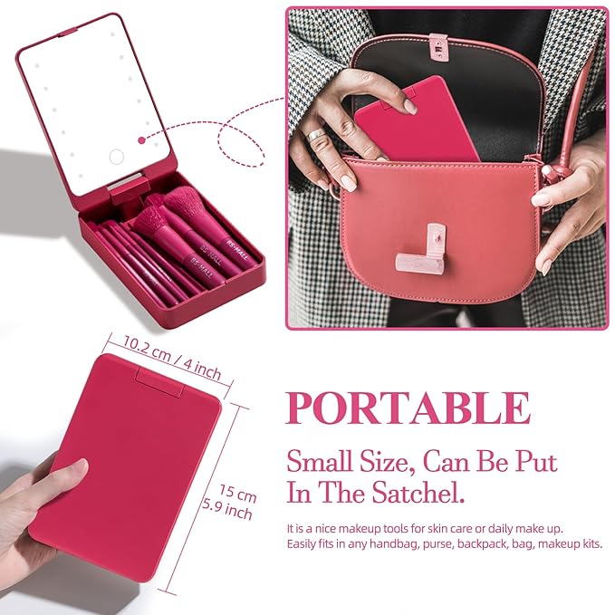 - 🎒Portable Design – An icon featuring a compact, folding makeup mirror nestled inside a small suitcase or handbag, symbolizing its portability and ease of carrying during travel.