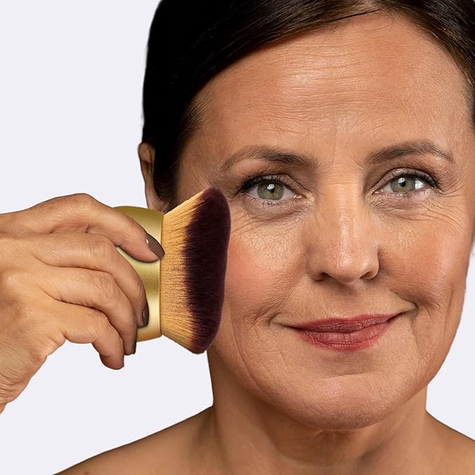 - IDEAL FOR LIQUID FOUNDATION, CREAM, AND POWDER PRODUCTS: Creates a flawless dream airbrushed makeup application. Swirl or dip the dense Kabuki brush into powder and gently tap off any excess. Apply to skin using sweeping, circular motions. Slide the base down slightly to apply creams or push it down all the way for powders. Our premium vegan bristles don't shed. Perfect for Powder and Liquid Foundation, Blush and other face makeup